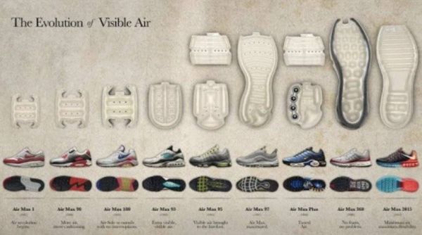 耐克前CEO Mark Parker曾告诉《好奇心日报》,“Air Max 受人追捧是因为它让气垫被人看见了,在此之前人们不知道什么是 ‘Air’,他们以为是一些泡泡,或其他的想象。”