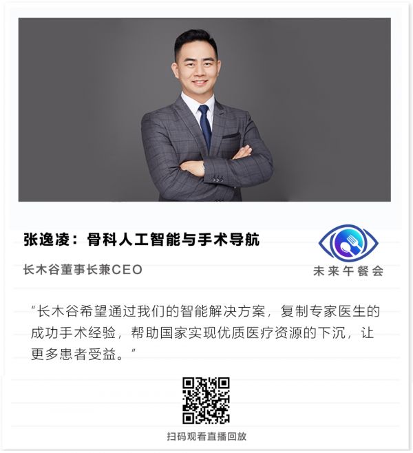 围绕智慧医疗领域,在本期未来午餐会栏目中,我们邀请到长木谷董事长兼CEO张逸凌博士,共同探索在骨科领域进行手术辅助的科技奥秘,以及如何借助技术的力量实现医疗下沉,让天下没有难做的手术。