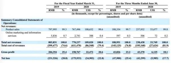 从财务表现来看,波奇宠物的成绩单并不算亮眼。根据波奇宠物公布的招股书,2019财年(2018年4月-2019年3月)、2020财年(2019年4月-2020年3月)及2021财年首季(2020年4月-6月),该公司营收分别为8.04亿元、7.7亿元及2.4亿元,可见近两年的财年营收呈下滑之势。
