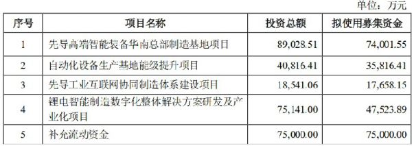 本次先导智能定增募集的25亿元,按规划有五项用途: