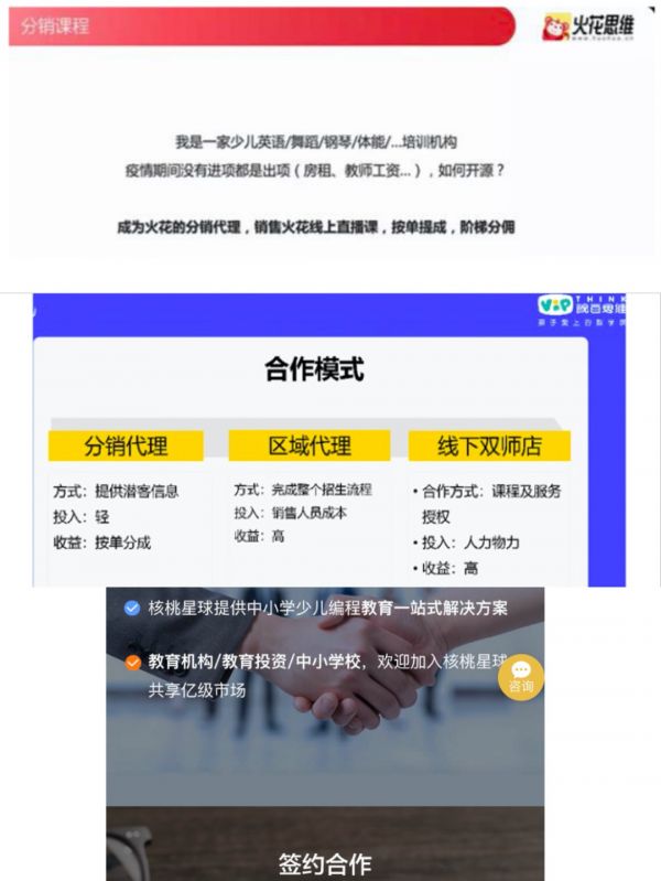 线下获客俨然成为了“天派”选手们新的切入点。而更早的动作,发生在疫情初期。今年年初,火花思维、豌豆思维、核桃编程等都陆续开放了诸如城市代理、双师课堂等方式来尝试地面渠道获客。