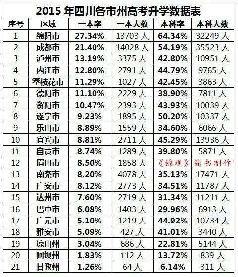 单说四川,四川高考看似是省内竞争,实际上四川绵阳和成都以十几万考生的数量,就获得了清北分给四川省70%以上的名额和一半的一本名额。单算这两个地区的录取率,和四川的其他城市没有可比性。