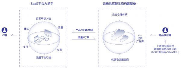 在供应端,XShoppy却建立了完全不同的一套业务架构。市场端的客户是小微商家,XShoppy的角色是赋能和服务;而供应端的客户是供应商,XShoppy的角色就变成了资源整合平台。私域流量是逆平台化的,但这个逻辑在供应端并不成立。对于上游供应厂商和服务商来说,小微电商正是他们的下游用户。ToB业务相比于ToC业务来说,流量拥挤程度要低得多,因此平台化反而能提升资源和需求的匹配效率。XShoppy面向供应端所搭建的云栈生态链,正是基于这一基础所作的尝试。