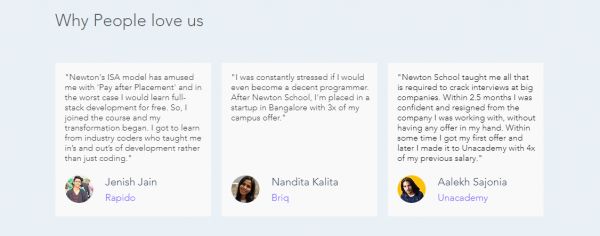 目前,「Newton School」有一个为期 6 个月的在线培训计划,并且,这项计划采取先上课后付费的方式。学生们可以零费用学习技能,在找到合适的职位后,再支付学费。