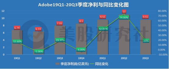 从营收数据来看,环比、同比均实现上涨态势,Adobe在本季度的表现还是不错的。高层也在本季度财报中表示,本季度的营收数据为Adobe经营历史上的最高值。