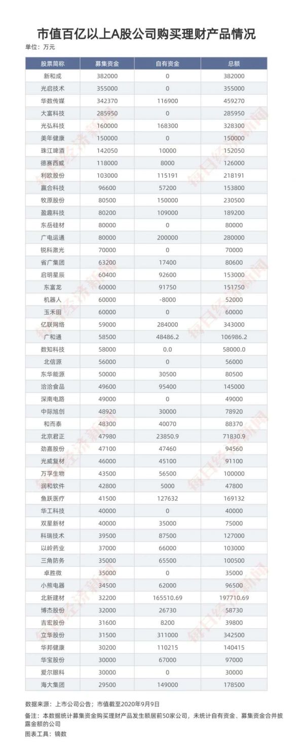 这96家超百亿市值公司不差钱?超500亿募资买了银行理财
