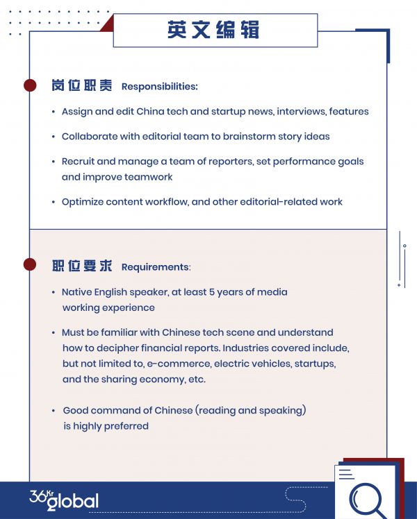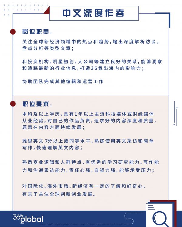36Kr Global 招人 | 深度作者、分析师、英文编辑等岗位开放申请中