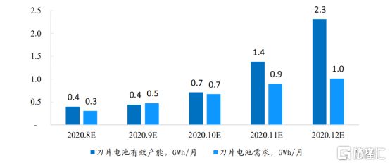 近期比亚迪决定加快产能爬坡,直到年末实现8线全通,将产能提高到13GWh;同时在长沙、贵阳生产基地则分别将在2021Q1、Q2全面量产,预计可以贡献25GWh的产能。公司远期的动力电池产能规划为100GWh。