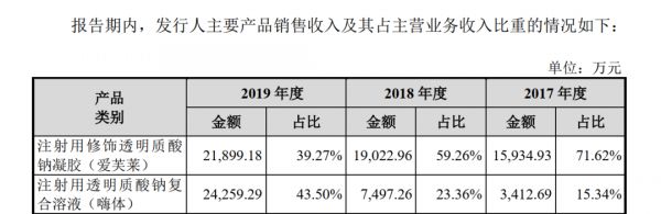 行业人士分析,由于玻尿酸产品的毛利率较高,产品贡献营收占比的多少,直接影响销售毛利率的高低,并进一步影响到整个公司的盈利水平。昊海生科就在2019年年报中表示,公司2019年毛利率有所降低,主要就是由由毛利率较高的玻尿酸产品营收占比下降所致。