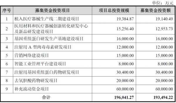 爱美客招股书对于风险因素的分析中,排在第一位的就是"创新风险"。爱美客表示,如果公司在投入大量研发经费后,无法研发出具有商业价值、符合市场需求的产品或技术,将给公司的盈利能力带来不利影响。招股书显示,公司拟募集的19.35亿元资金,扣除补充流动资金后,主要投向创新项目。