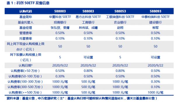 9月22日,首批科创50ETF来自华夏、易方达、华泰柏瑞、工银瑞信四家公募旗下,现金认购首募规模上限均为50亿元(人民币,下同)。