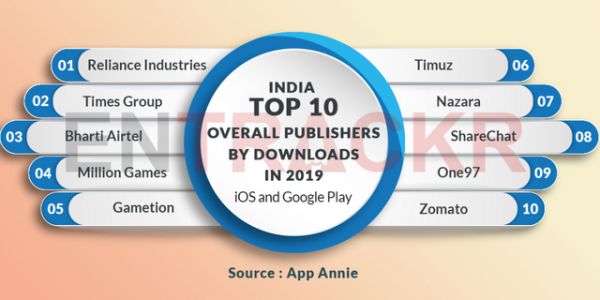 就现实情况而言,背靠信实的Jio正在本土发展壮大。App Annie报告显示,2019年,在印度应用程序下载榜单中,信实登榜TOP1,在Google Play上有超过15个应用程序是由Jio开发的。