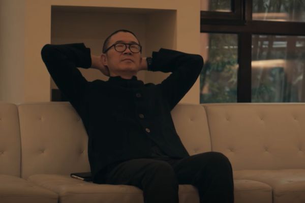 他的个人装束,也在朝这个方向靠拢:短寸头,黑色圆框眼镜,上衣、裤子、鞋子也全是黑色系。外套常穿件中山装,扣子系到最上面那一颗,天气冷会再配条深色围巾。