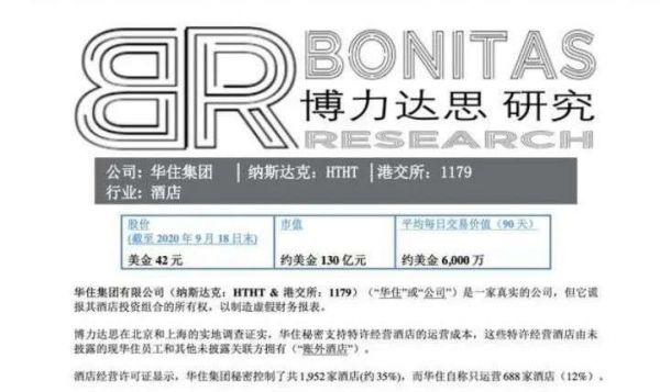 9月22日,在汉庭酒店登陆美股资本市场十年后,由汉庭更名来的“华住集团”正式在港交所上市。截至今日收盘,华住港股股价升4.71%,报311港元/股,市值999.58亿港元。而就在上市前几个小时,华住遭到沽空机构做空,后者指责其财务造假。