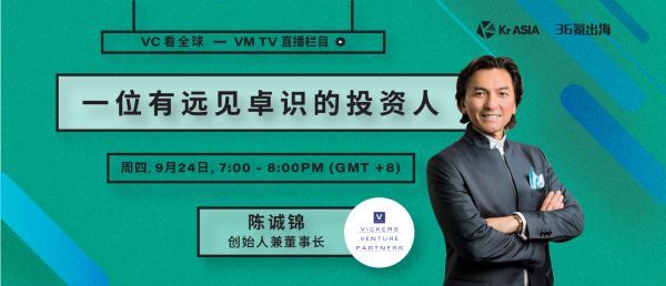 9月24日(本周四),KrASIA 「VC看全球」节目第八期邀请到了 Vickers Venture Partners 的创始人兼董事长陈诚锦(Finian Tan)博士。