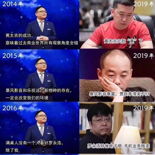 乐视没有被救活,暴风自身也陷入万劫不复的深渊,罗振宇对商业的认知被不断打脸,得到上传递的知识也不再被奉为箴言,公众对于经过精美包装的正确理论逐渐练就了一副火眼金睛,在知识领域占据高地的罗振宇们被一次次拉下神坛,没有人再相信速成、暴富、躺赢的谎言,碎片化的知识不会改变命运,激情宣言终究没有照进现实,“直面挑战,躬身入局者,皆为吾辈”的热血,依然掩饰不了鸡汤背后的商人属性。