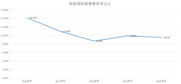 从数据来看,颐海国际近几年的销售费用,呈现逐年下降趋势。2020上半年,该项支出在总营收中的占比仅为9.51%。这在调味品行业内,是低于中位数的水平。