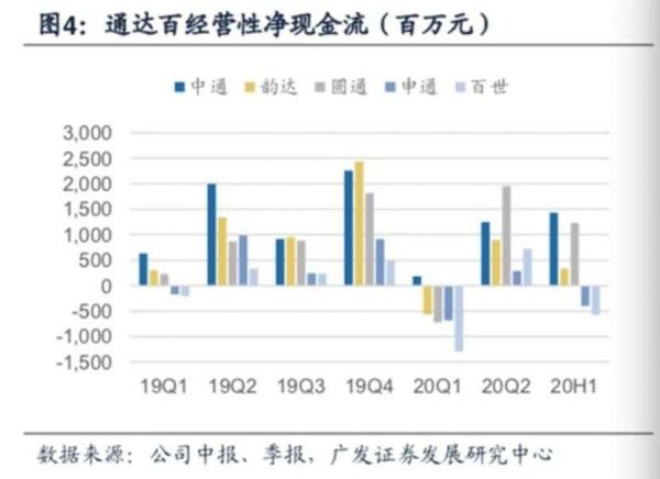 在广发证券看来,在不考虑外部融资的情况下,经营性净现金流决定了快递公司继续扩张的潜力和参与价格战的韧性。从上半年的数据来看,截至2020年6月30日,中通的类现金余额是圆通、申通、百世总和的85%。