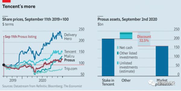 Prosus作为Naspers旗下控股子公司,持有Naspers的国际互联网资产,去年由Naspers分拆出来上市。而目前,Naspers所持有的腾讯控股股权也已经由Prosus接手。