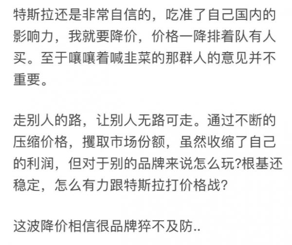 通过不断推出低价产品线进入新市场,特斯拉不再是硅谷精英的专属,而逐渐迈向平民化。对于消费者和市场而言,此举可以加速推进国内新能源市场发展,自上而下培育中国新能源消费集群。而对于国产竞家而言,却是一种降维打击。