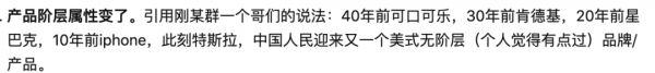 引用网友的话:40年前的可口可乐,30年前的肯德基,20年前的星巴克,10年前的iPhone,此刻特斯拉,中国人民又迎来一个美式无阶层品牌。