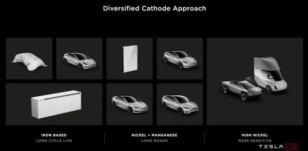 在电池日上,PPT上列出Semi和Cybertruck将使用高能量镍。