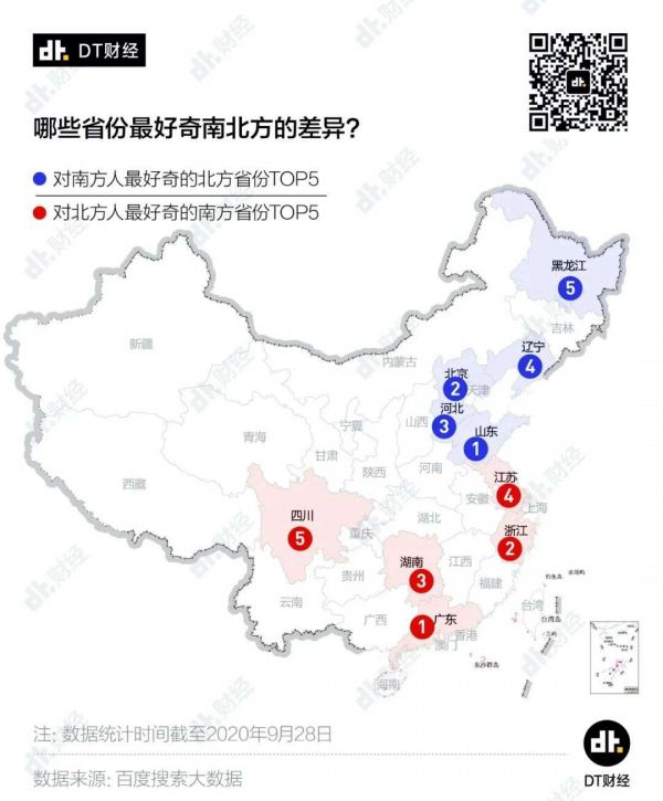 广东是对北方人最好奇的南方省份,而山东是对南方人最好奇的北方省份。