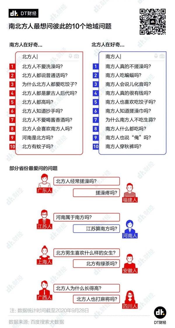 DT君跟百度搜索大数据一起,从人们一次次搜索的动作里,看看南方人和北方人相互之间都有哪些好奇和不解,盘点一下这场隔着秦岭淮河的南北大问答。