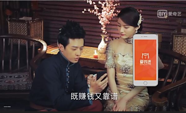 2016年,流量小生张艺兴加持的IP《老九门》大火,它的火爆同时带火了一款名为“爱钱进”的App。彼时,网剧中插播创意广告的模式刚刚兴起,爱钱进看准了机会,在《老九门》中插入了多个广告,而这些广告基本都脱离现实。