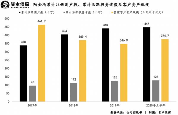 资产管理端同样如此,平台累计注册用户数由2017年的3,380万人增长至2020年上半年的4,470万人,其中活跃投资者增长至1,280万人。客户资产总规模在2017年至2019年呈下降趋势,但2020年上半年有小幅增长,达到3,747亿元。