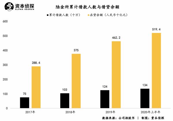 招股书披露,通过陆金所平台借款的人数由2017年的750万增至2020年上半年的1,340万人,在贷余额从2017年的2,884亿增长至2020年上半年的5,194亿,年复合增长率为26.6%。