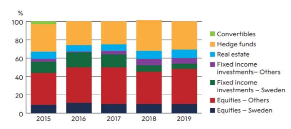 2019年,诺贝尔基金会的资产投资比例为股票类47%,房地产基金投资9%,固定收益类产品13%和对冲基金33%。