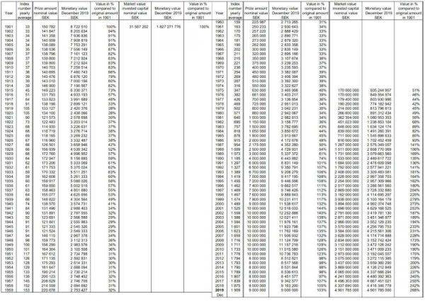 所以诺贝尔留下的3100万瑞典克朗,并不是拿着纸箱子包好一直放着不动,每年等着获奖者来取走一部分。