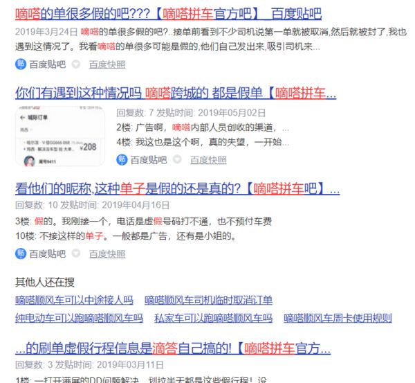 而在嘀嗒拼车的官方贴吧,很多车主和乘客都讨论过嘀嗒上的虚假订单。造成这一现象不是孤立的,刷单情况在嘀嗒上是发生过的。《武汉晨报》就做过调查:武汉 “嘀嗒”刷单3元一人,这样的 “摆渡车”真的好吗?