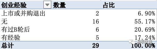 管理经验主要看有没有带领10人以上团队的经验,有部分在知名公司做专家类型工作的创始人,我们理解是没有管理经验的。