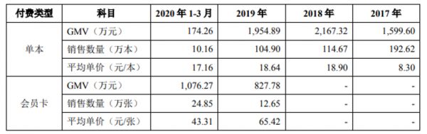 电商业务作为知识服务的配套业务,主要销售实体图书、“得到阅读器”和周边,2017-2019年,营收分别为1.5亿、1亿、0.8亿。20201-3月,营收为0.19亿。