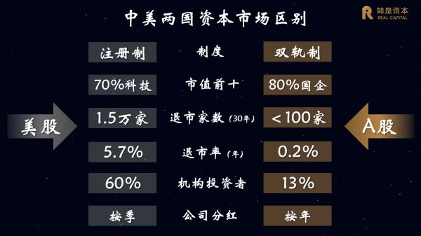 中国资本市场目前与成熟资本市场仍有诸多不同,我们拿美股进行举例对比: