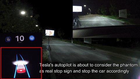 特斯拉 Autopilot 将投影在路上的虚拟人当成真人,下达刹车命令。