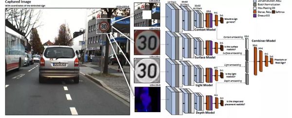 本 · 古里安大学的研究者并未测试针对更多传感器设置的攻击, 但他们演示了在基于摄像头的平台上检测到幻影的方法。研究者开发了一个名为 "Ghostbusters" 的系统,用于验证车载目标检测器检测到的物体,该系统的设计考虑了诸如深度、光线以及交通标志周围的环境感知等要素,并权衡所有这些要素,然后再确定道路标志图像是否真实。