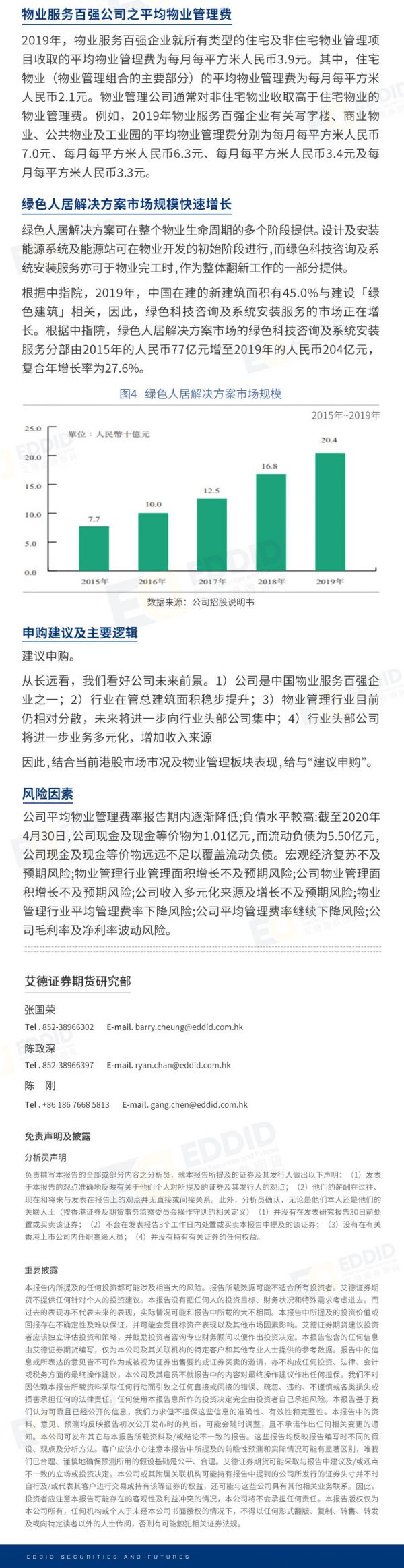 艾德智研:公司物业管理面积及收入稳步增长 平均物业管理费率降低 第一服务公司正在招股中