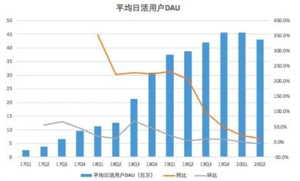 很多用户选择趣头条,就是是为了利用碎片时间赚钱,但随着趣头条在用户获取和营销费用的减少,直接影响了用户的使用时长和频率。趣头条2020年二季度的市场和营销费用为9.253亿元,较去年同期的13.218亿元,减少了30%,较上一季度的10.745亿元,减少13.9%。趣头条二季度平均日活跃用户为4300万,低于第一季度的4560万,平均日活用户减少了260万。