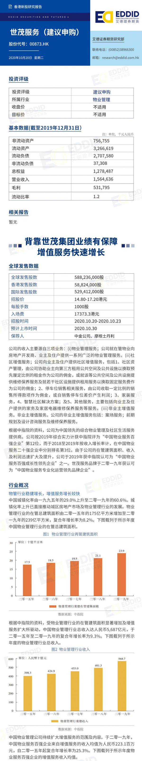 艾德智研:背靠世茂集团业绩有保障 增值服务快速增长 世茂服务正在招股中