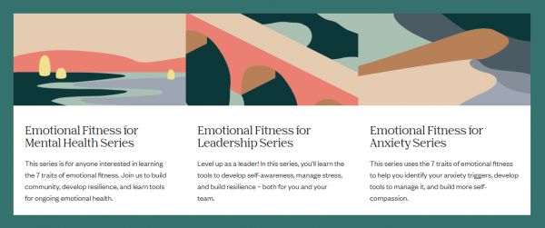 “Emotional Fitness Studio”的互动小组课程起价为 25 美元,可以促进线上社区的发展,同时为用户建立良好的情感控制能力。每节课都遵循学习、锻炼、突破、讨论这个框架,该框架建立在 Emily Anhalt 博士对情绪适应性 7 个特质的研究之上。