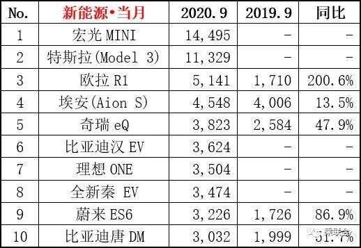 乘联会9月新能源乘用车销量榜