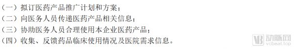 《管理办法》明确规定,医药代表的工作任务主要包括: