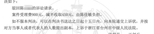 但最终法院并不支持,还让陈女士自行承担了450元的诉讼费。