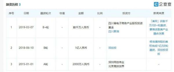 截至目前美呗融资三轮,总计融资不超过2亿。2015年1月,获得深圳同创伟业、北京竞技世界A轮2000万人民币投资;2018年6月10日,获深创投B轮1亿人民币投资;2019年3月,获四川省电子商务产业股权投资基金、四川聚信,B+轮,数千万人民币投资。此后,未有融资动态公布。