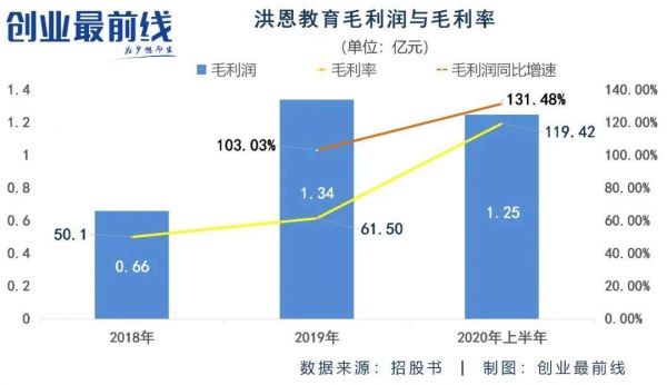 同时,洪恩教育的毛利率也呈现稳步上升态势。招股书显示,2018年、2019年和2020年上半年,该公司的毛利润分别为6601万元、1.34亿元和1.25亿元,毛利率分别为50.1%、61.5%、67.6%。