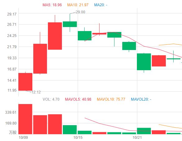 不过,10月14日起,洪恩教育的股价连续两日回落,而后在10月16日开始反弹,但紧接着连续三日下挫,最高跌超20%,随后在10月22日出现大幅反弹,涨幅接近20%,次日又跌去4.43%。