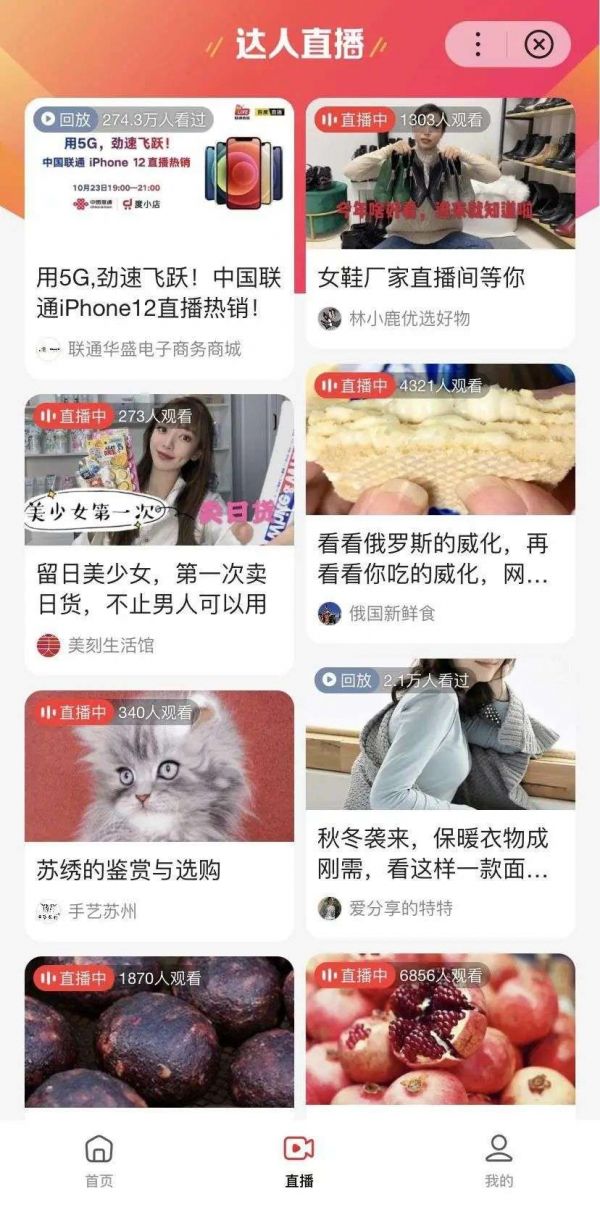 直播是百度今年重点发力的方向。在购物频道,直播拥有“达人直播”和“直播”两个入口,前者展示度小店精选小程序直播页面,后者直接在标签下方的信息流展示直播。